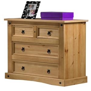 Kód produktu: 1506Amateriál masív borovica voskovaná v medovom odtieni 2 malé a 2 veľké zásuvky, kovové ozdobné úchytky vhodný doplnok je nadstavec CORONA 16463 súčasť zostavy Corona