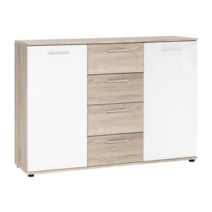 Kód produktu: 206261farebné prevedenie dub Sonoma / biela 4 zásuvky s kovovými pojazdmi 2 dvierka, 2 variabilné police