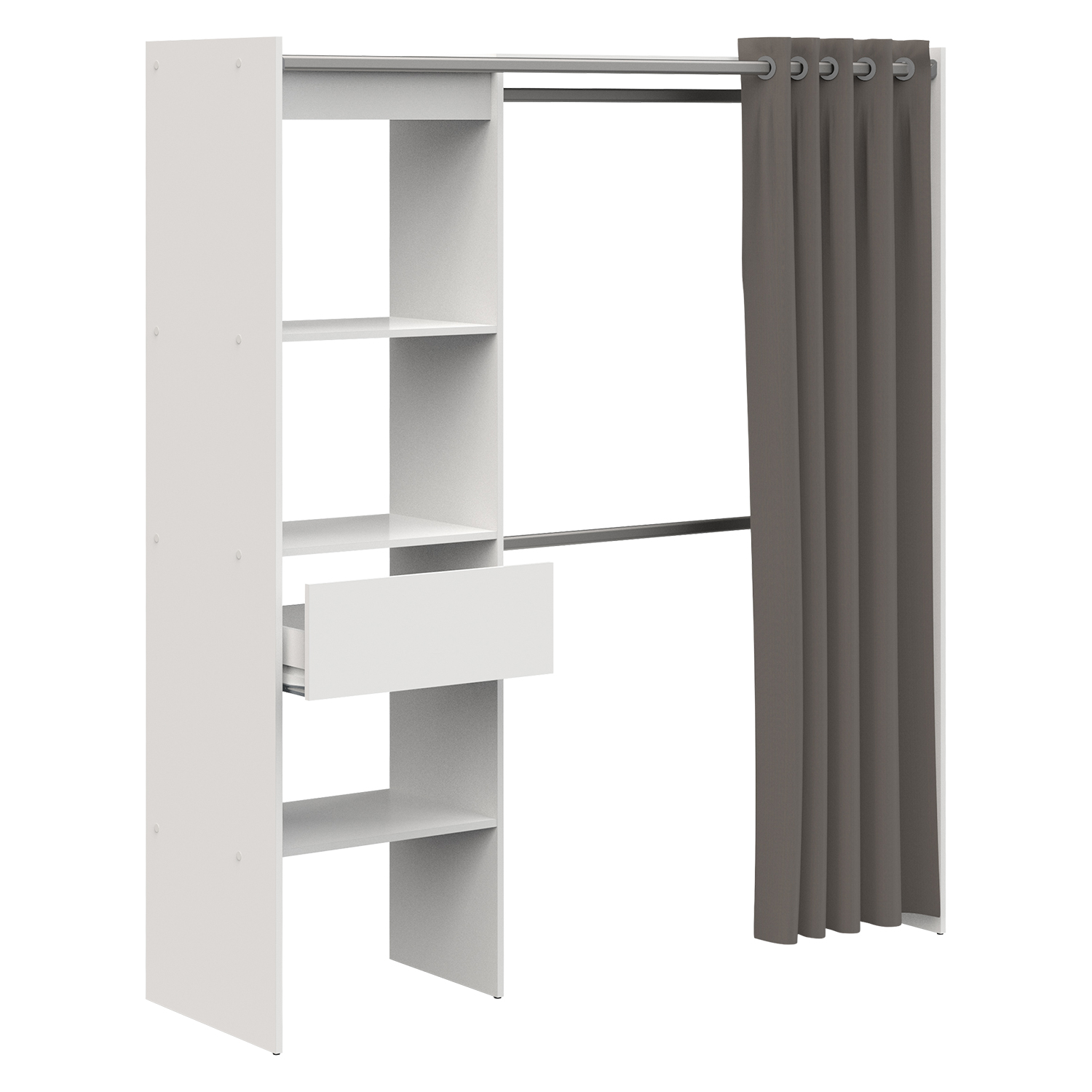 lišta na záves s dĺžkou 165 cm, 3 police s rozmerom (š/h) 57 × 40 cm