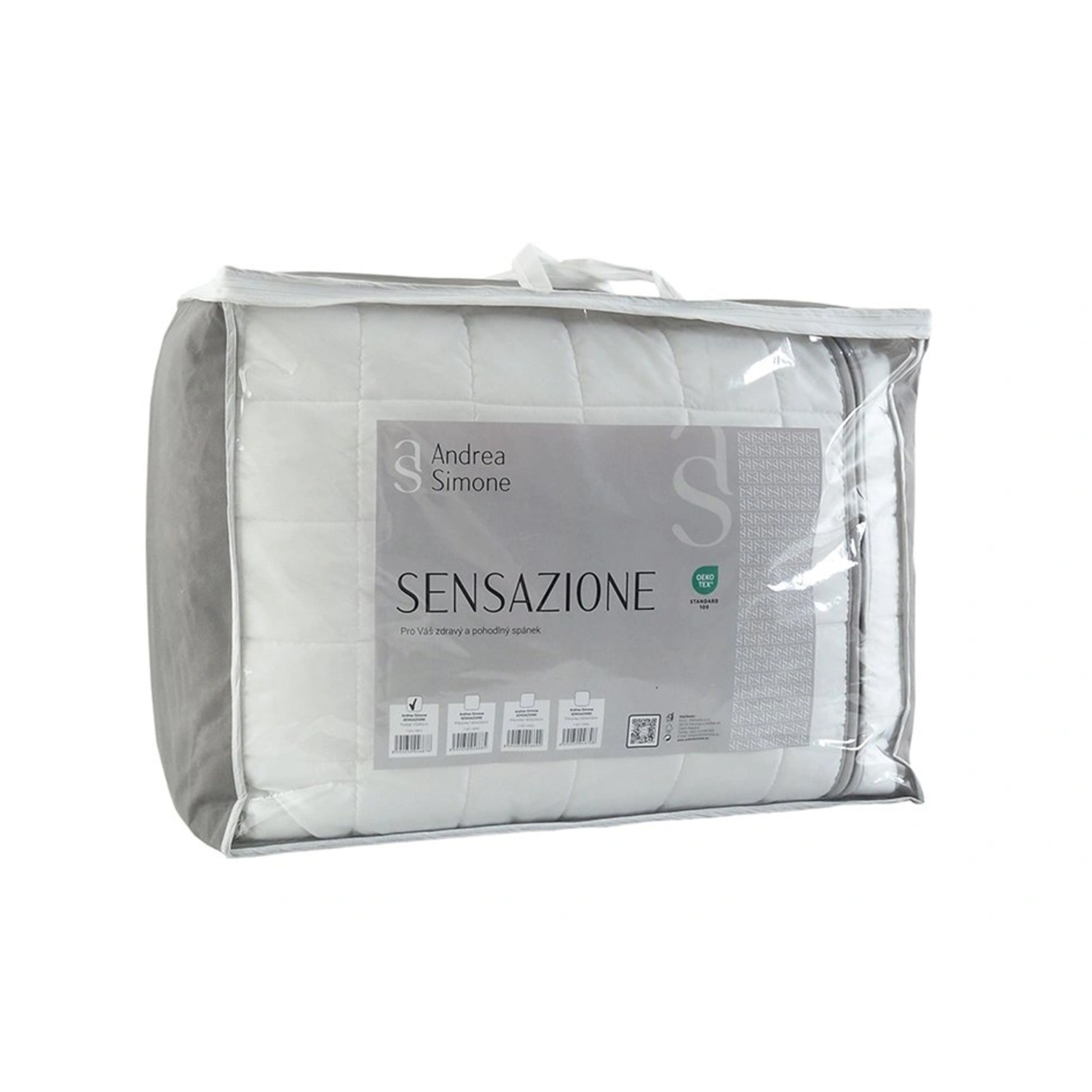 Zažite dokonalé pohodlie s vankúšom Andrea Simone Sensazione s rozmermi 70 × 90 cm. Tento vankúš je navrhnutý tak, aby poskytoval maximálnu oporu a komfort počas spánku. Vďaka náplni z polyesterového rúna s hmotnosťou 1250 g je vankúš ľahký, ale zároveň dostatočne pevný, čo zaisťuje ideálnu polohu hlavy a krku. Elegantné prešitie poťahu dodáva vankúšu nielen estetický vzhľad, ale taktiež pomáha udržať náplň rovnomerne rozloženú. Materiál je hypoalergénny, čo z neho robí skvelú voľbu pre alergikov. Poťah vankúša je na zips, je teda možné regulovať objem náplne presne podľa vašich predstáv.