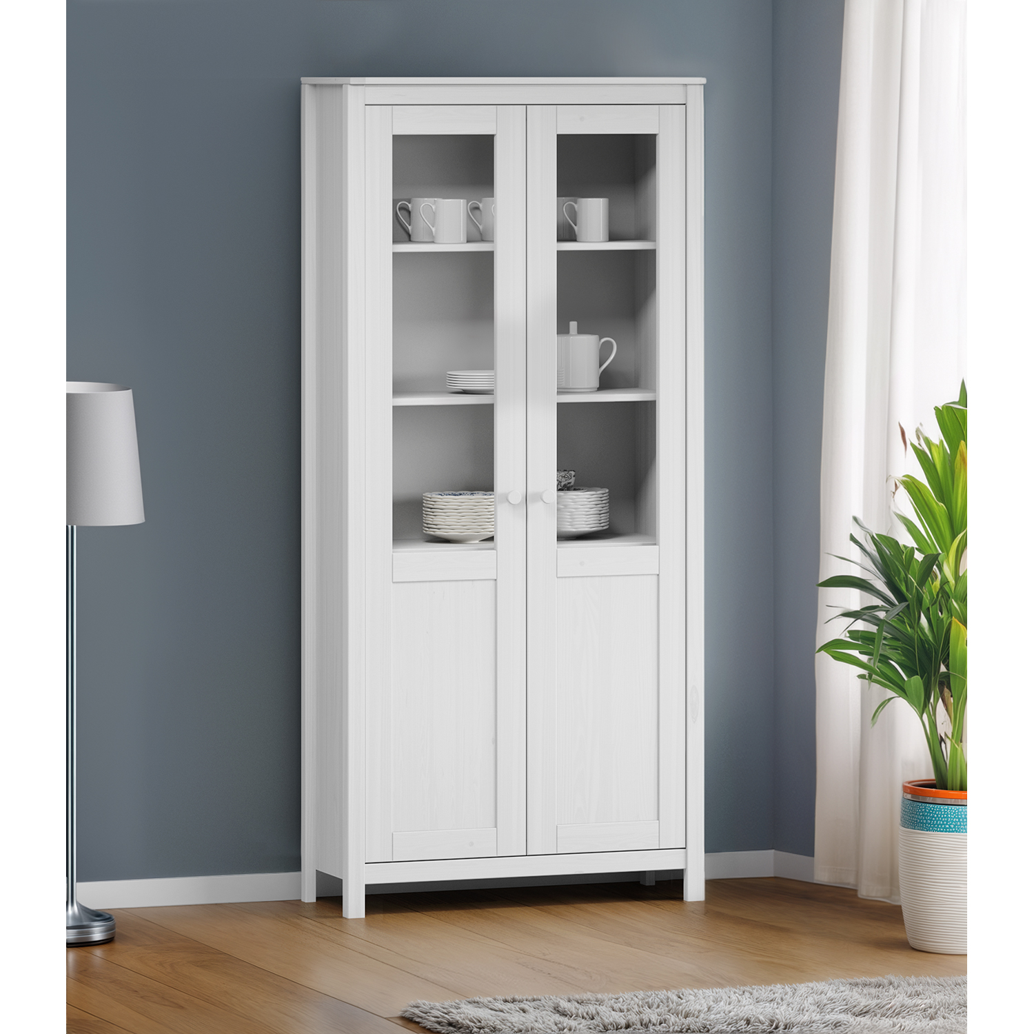 Kód produktu: 8095Bmateriál masív borovica, farebné prevedenie biely lak 2 presklené dvere, 1 polica nadstavec príborníka 8095B