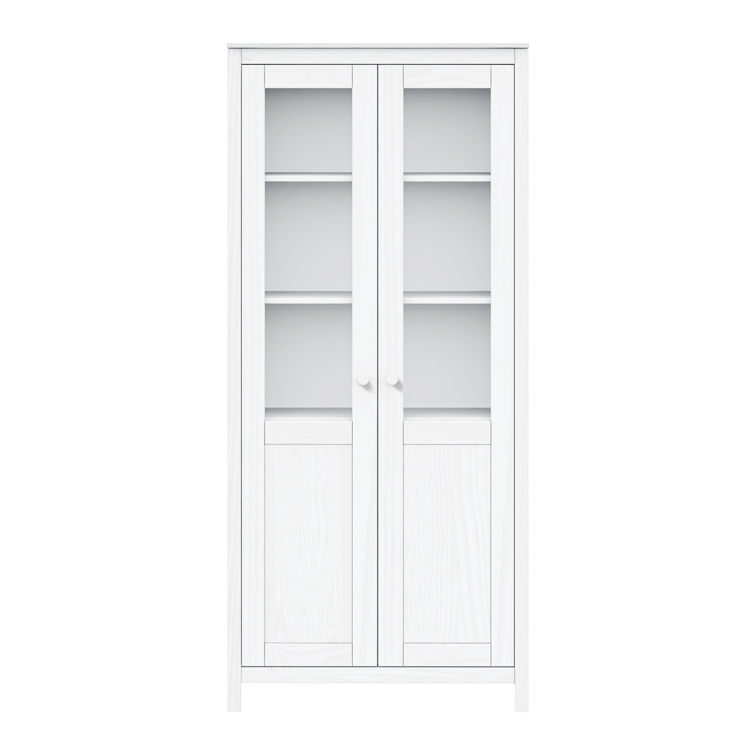 Kód produktu: 8094Bmateriál masív borovica, farebné prevedenie biely lak dvoje čiastočne presklené dvere, tri police jedna zásuvka s kovovými pojazdmi