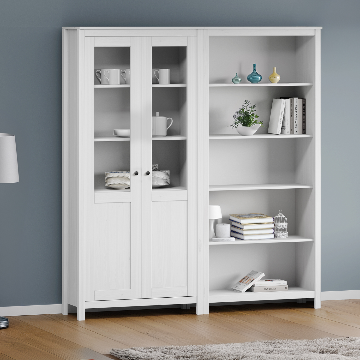 Vneste do svojho domova nádych elegancie a praktickosti s našou krásnou vitrínou z masívnej borovice. Povrch vitríny je ošetrený bielym lakom, ktorý dodáva nábytku svieži a moderný vzhľad, zatiaľ čo kovové úchytky pridávajú štýlový kontrast. Táto vitrína je ideálnym miestom na vystavenie vašich obľúbených predmetov, či už sa jedná o knihy, sklo, dekorácie alebo rodinné fotografie. Dvoje čiastočne presklené dvere umožňujú elegantný pohľad do vnútorného priestoru, pričom chránia vaše cennosti pred prachom. Vnútri nájdete štyri priestranné police, ktoré poskytujú dostatok miesta na usporiadanie vašich vecí. Kombinácia bieleho laku a masívneho borovicového dreva zaručuje, že táto vitrína bude nielen funkčným, ale aj estetickým doplnkom vášho interiéru. Nechajte túto vitrínu zažiariť vo vašej obývačke, jedálni alebo pracovni a užite si dokonalú kombináciu štýlu a praktickosti. Pridajte do svojho domova túto elegantnú vitrínu a vytvorte priestor, ktorý bude nielen krásny na pohľad, ale aj skvele organizovaný.