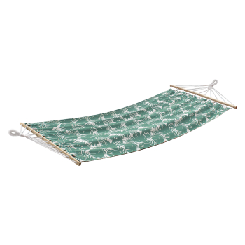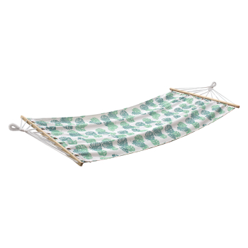 Letný deň, obloha bez mráčikov, prázdniny, odpočinok, more. Čo ďalšie sa vám vybaví pri pohľade na hojdaciu sieť, zavesenú medzi stromami v záhrade. Stromy máte, ale chýba vám sieť? Nič neriešiteľného. Zaobstarajte si závesnú hojdaciu sieť 507335 s jemnou vlnkovou potlačou na látke, ktorá je zo 65% bavlny a 35% polyesteru. Látka je ukotvená cez dve drevené latky. Je len na vás, kam ju zavesíte a užijete si príjemné chvíle.