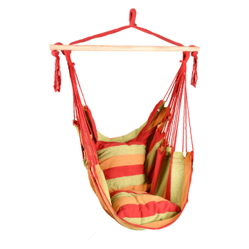 Nie je nič lepšie, než keď si v lete doprajete pohodu v závesnom záhradnom kresielku. Materiál je 65% bavlna a 35% polyester. Vďaka farebnej kombinácii zelenej a modrej kreslo skvele zapadne niekde medzi stromami na vašej záhrade. Rozmer vankúšov je 35 × 35 cm. Rozperka je z tvrdého masívneho dreva s priemerom 3,2 cm o dĺžke 90 cm. Odporúčaná nosnosť kresla je do 120 kg. Doprajte si trochu pokoja a odpočinku v záhradnom kresielku. Pokiaľ nemáte záhradu, skúste napríklad balkón alebo lodžiu, aj tam sa dá záhradné kreslo obvykle inštalovať.