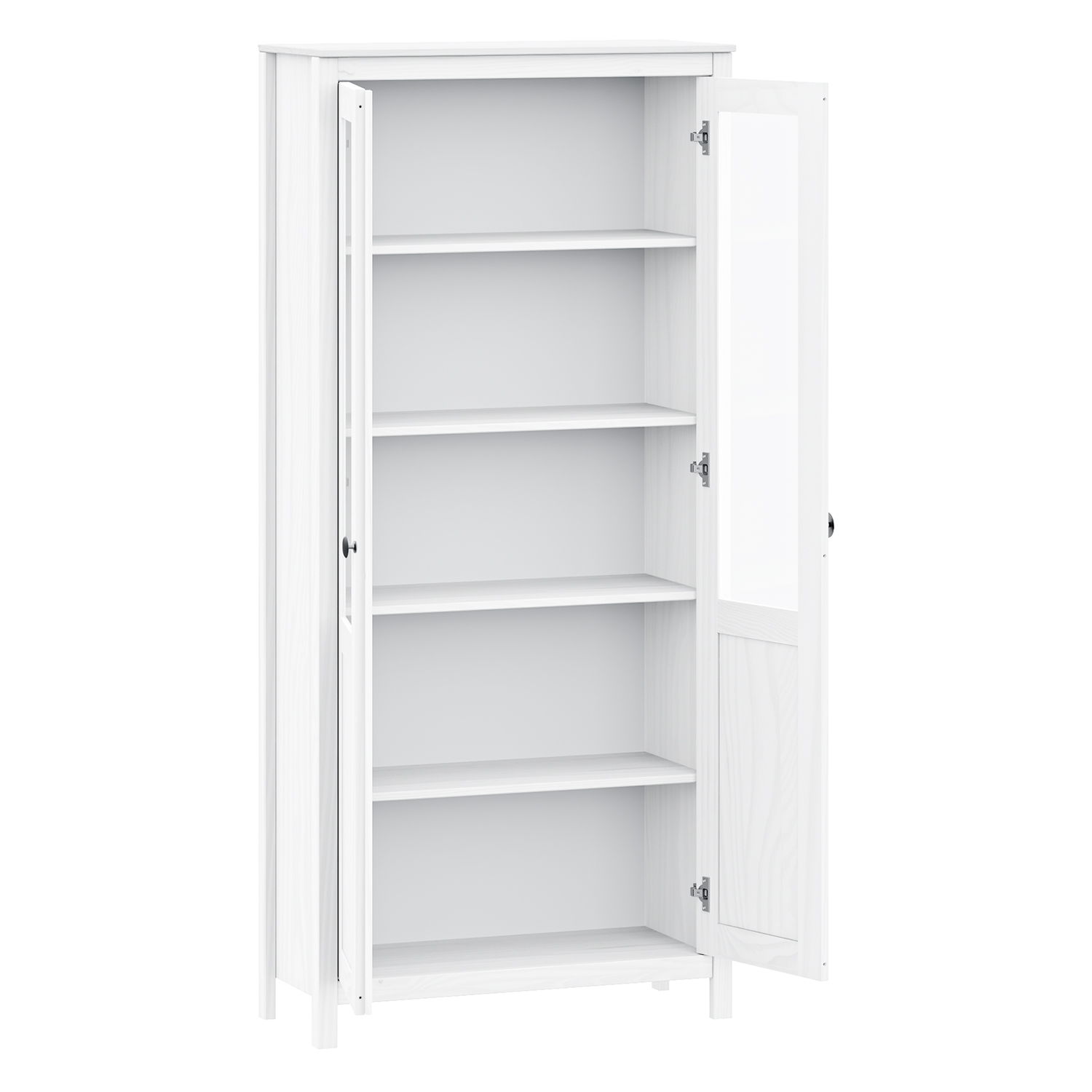 Kód produktu: 8071BKmateriál masív borovica, farebné prevedenie biely lak kovové úchytky vo farebnom prevedení černená mosadz dvoje čiastočne presklené dvere, štyri police