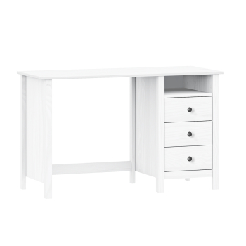 Kód produktu: 9130BKmateriál masív borovica, farebné prevedenie biely lak kovové úchytky vo farebnom prevedení černená mosadz tri zásuvky s kovovými pojazdmi