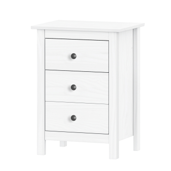 Kód produktu: 8077BKmateriál masív borovica, farebné prevedenie biely lak kovové úchytky vo farebnom prevedení černená mosadz 3 zásuvky s kovovými pojazdmi, 1 polica