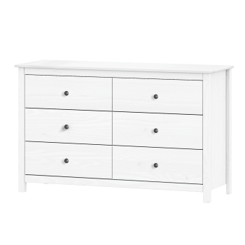 Kód produktu: 9132BKmateriál masív borovica, farebné prevedenie biely lak kovové úchytky vo farebnom prevedení černená mosadz šesť zásuviek s kovovými pojazdmi rozmer zásuvky (š/h/v) 52 × 33 × 19 cm