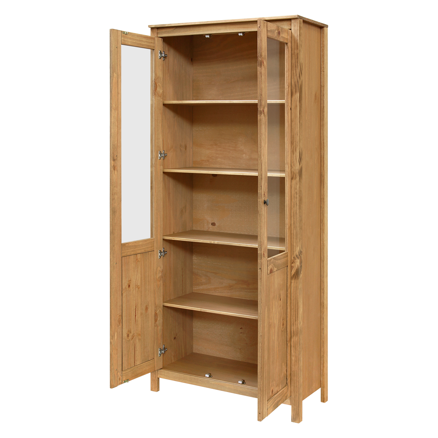 Kód produktu: 8060Vmateriál masív borovica voskovaná v medovom odtieni kovové úchytky vo farebnom prevedení černená mosadz 2 presklené dvere, 2 police maximálne nosnosti uvedené v návode na montáž