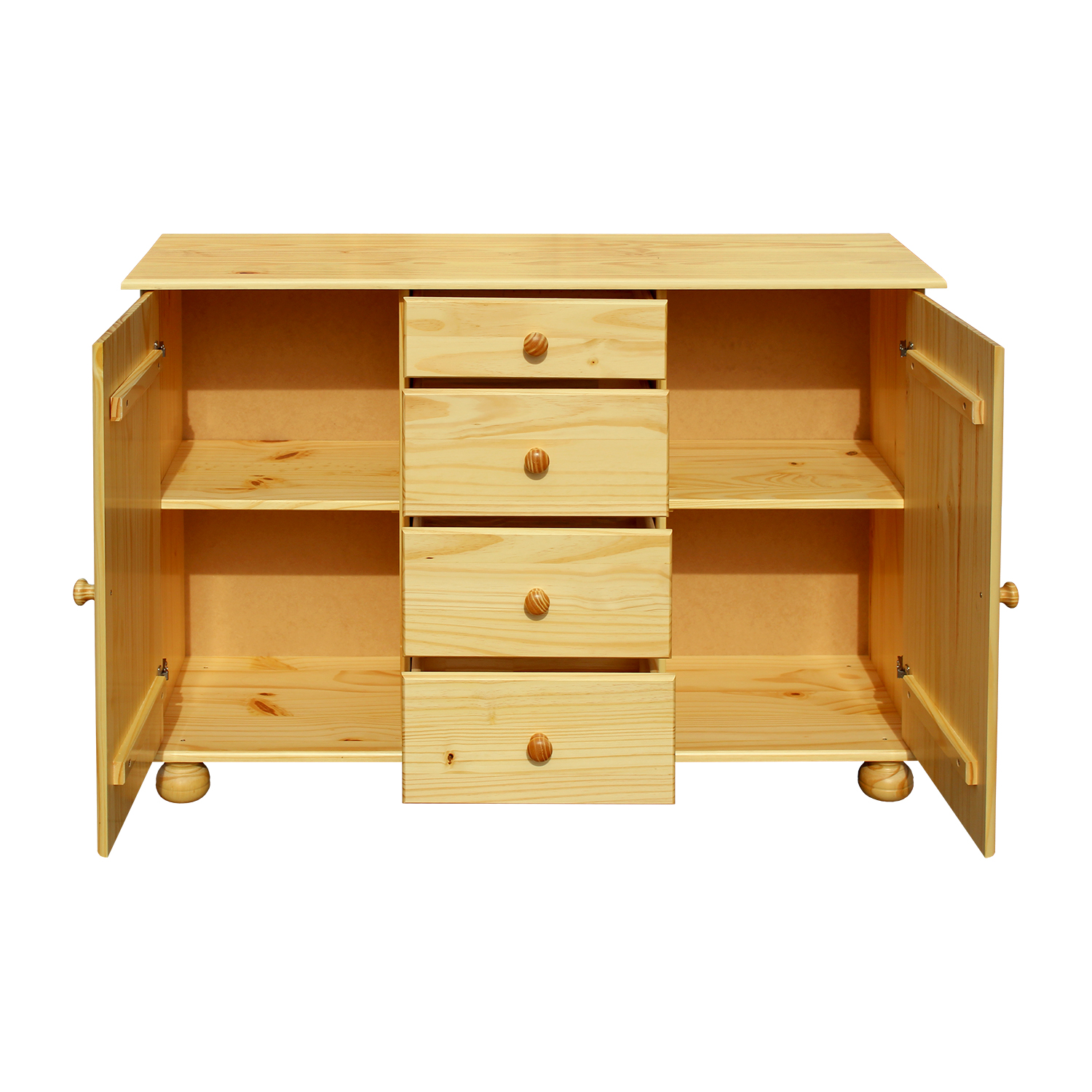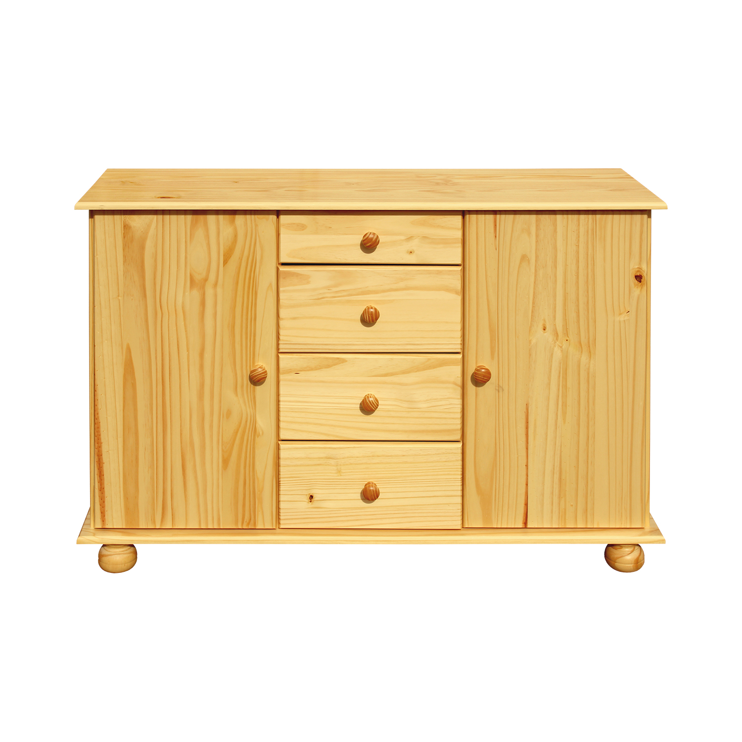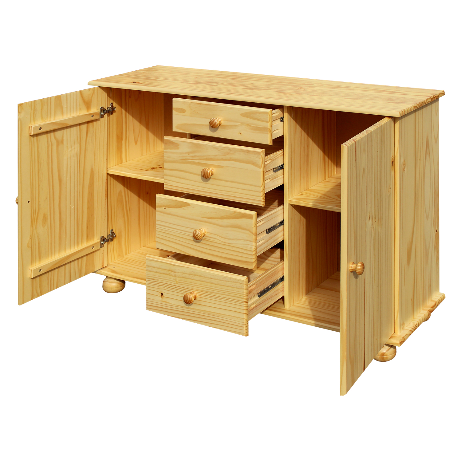 príborník: 4 zásuvky s kovovými pojazdmi, 2 skrinky s dvierkami vybavené policou
