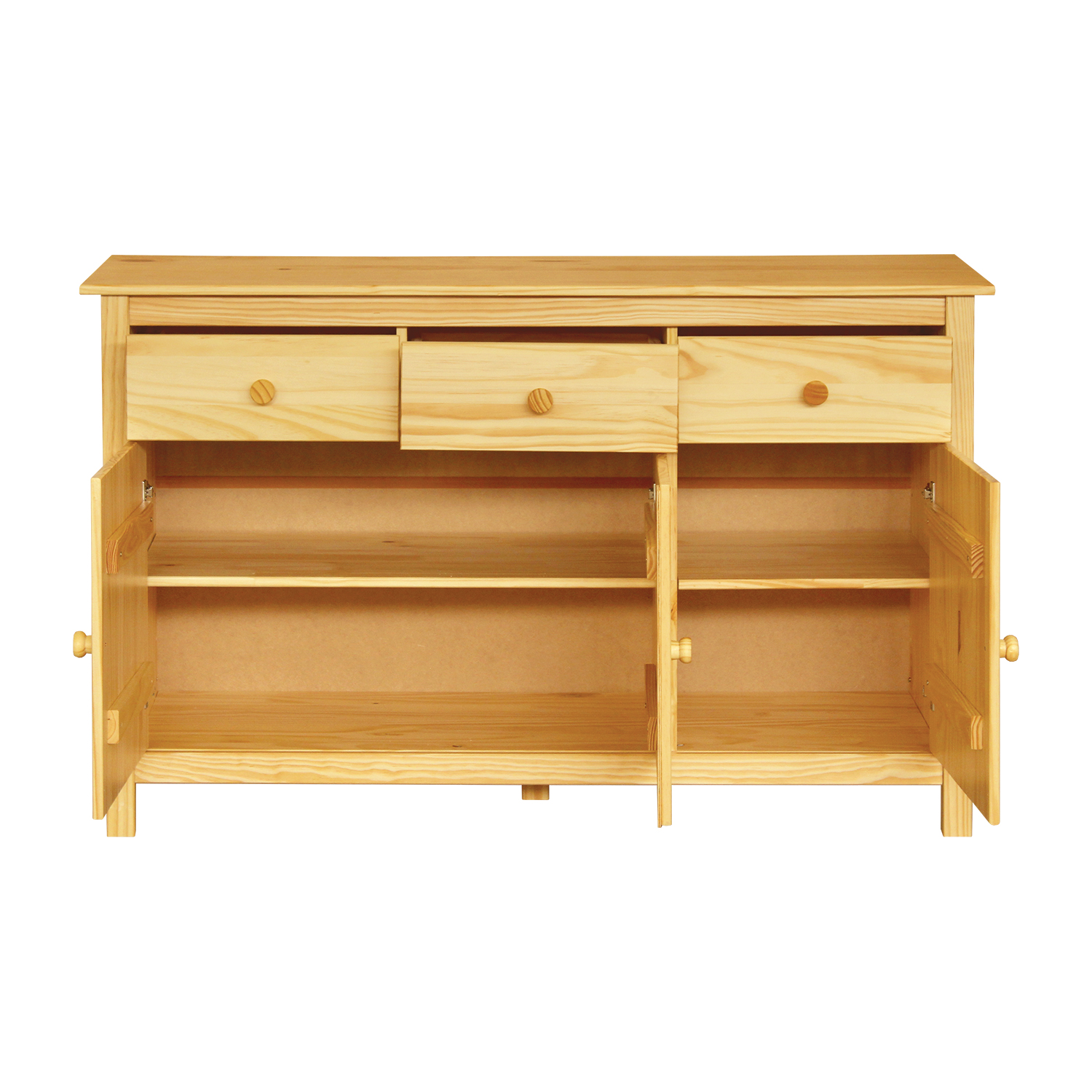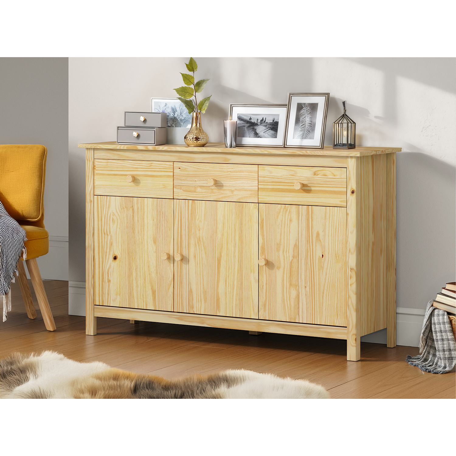 Kód produktu: 8061materiál masív borovica, lakované prevedenie 3 zásuvky s kovovými pojazdmi, 3 plné dvere, 2 police maximálne nosnosti uvedené v návode na montáž